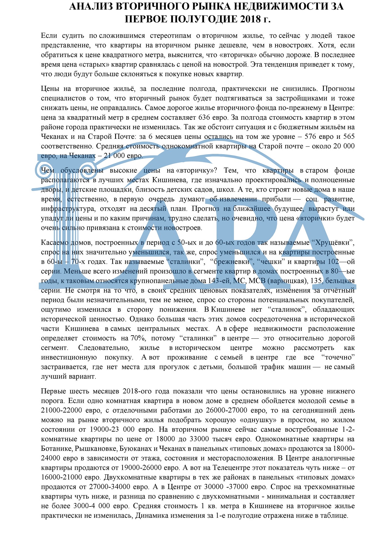Анализ вторичного рынка недвижимости за первое полугодие 2018 года.