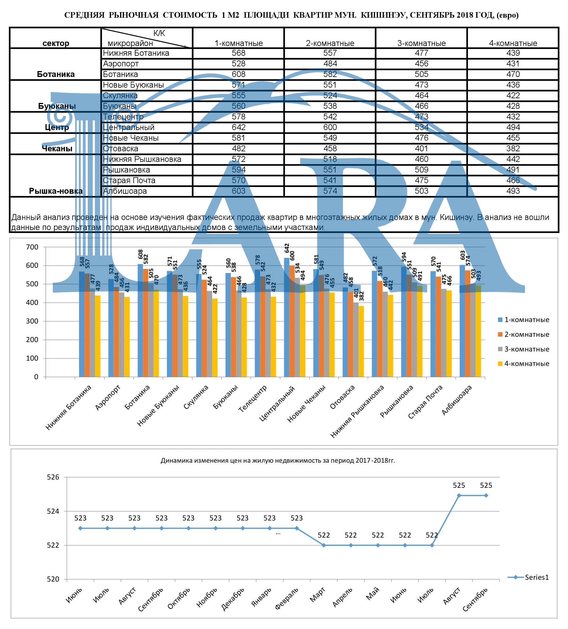 CРЕДНЯЯ РЫНОЧНАЯ СТОИМОСТЬ 1 М2 ПЛОЩАДИ КВАРТИР МУН. КИШИНЭУ, СЕНТЯБРЬ 2018 ГОД, (евро)