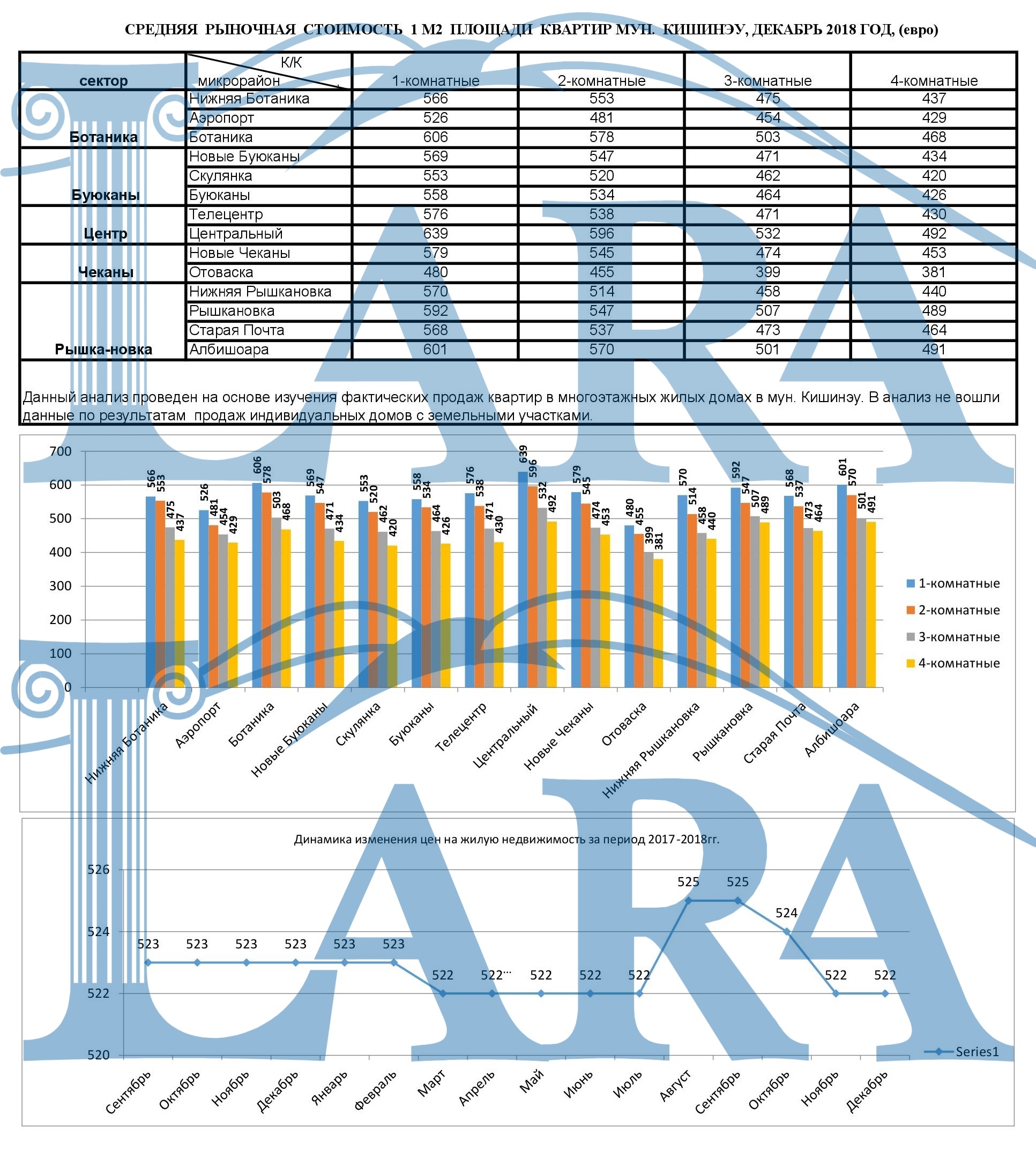 CРЕДНЯЯ РЫНОЧНАЯ СТОИМОСТЬ 1 М2 ПЛОЩАДИ КВАРТИР МУН. КИШИНЭУ, ДЕКАБРЬ 2018 ГОД, (евро)