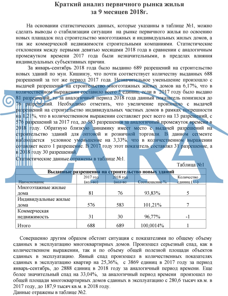 Краткий анализ первичного рынка жилья за 9 месяцев 2018г.