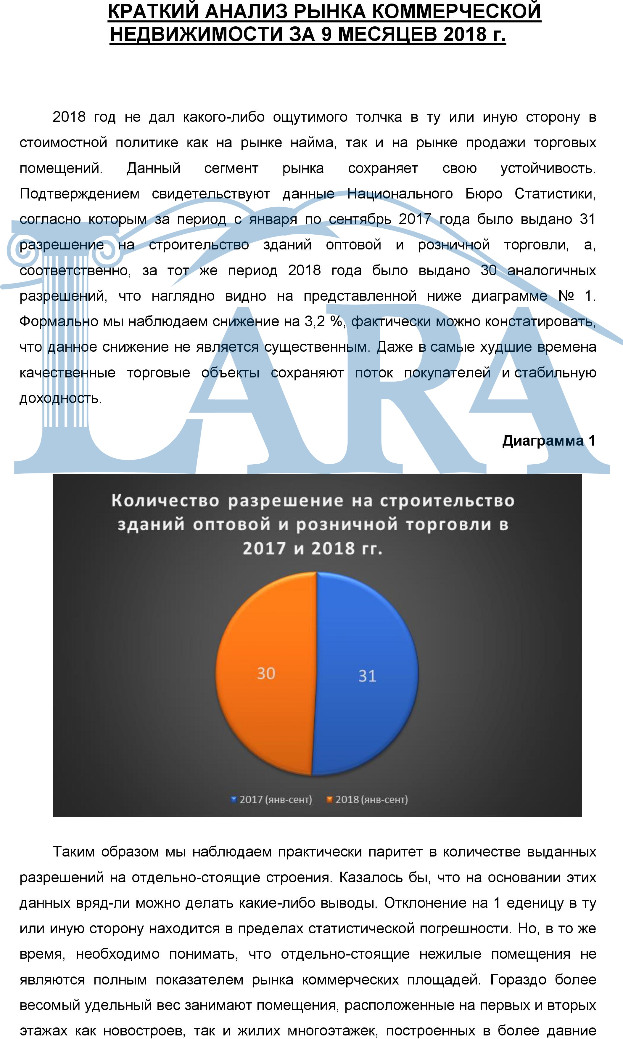 КРАТКИЙ АНАЛИЗ РЫНКА КОММЕРЧЕСКОЙ НЕДВИЖИМОСТИ ЗА 9 МЕСЯЦЕВ 2018 г.