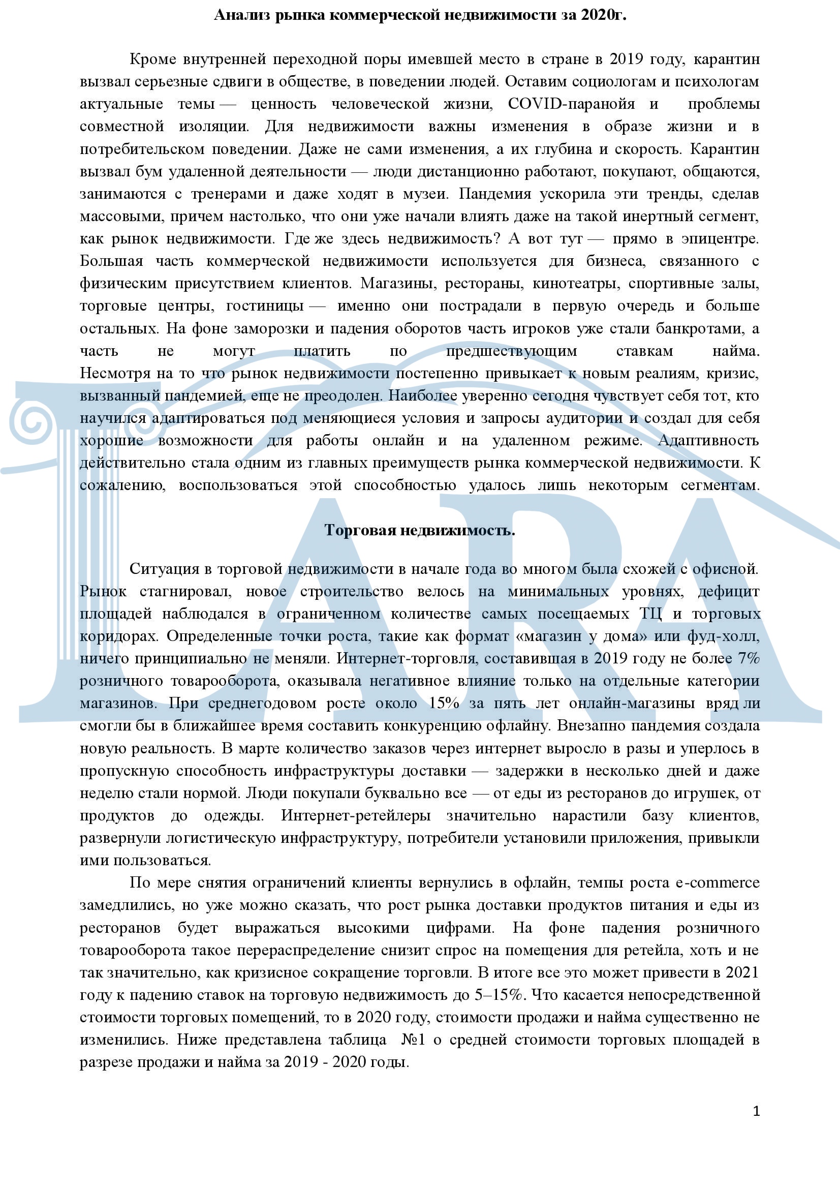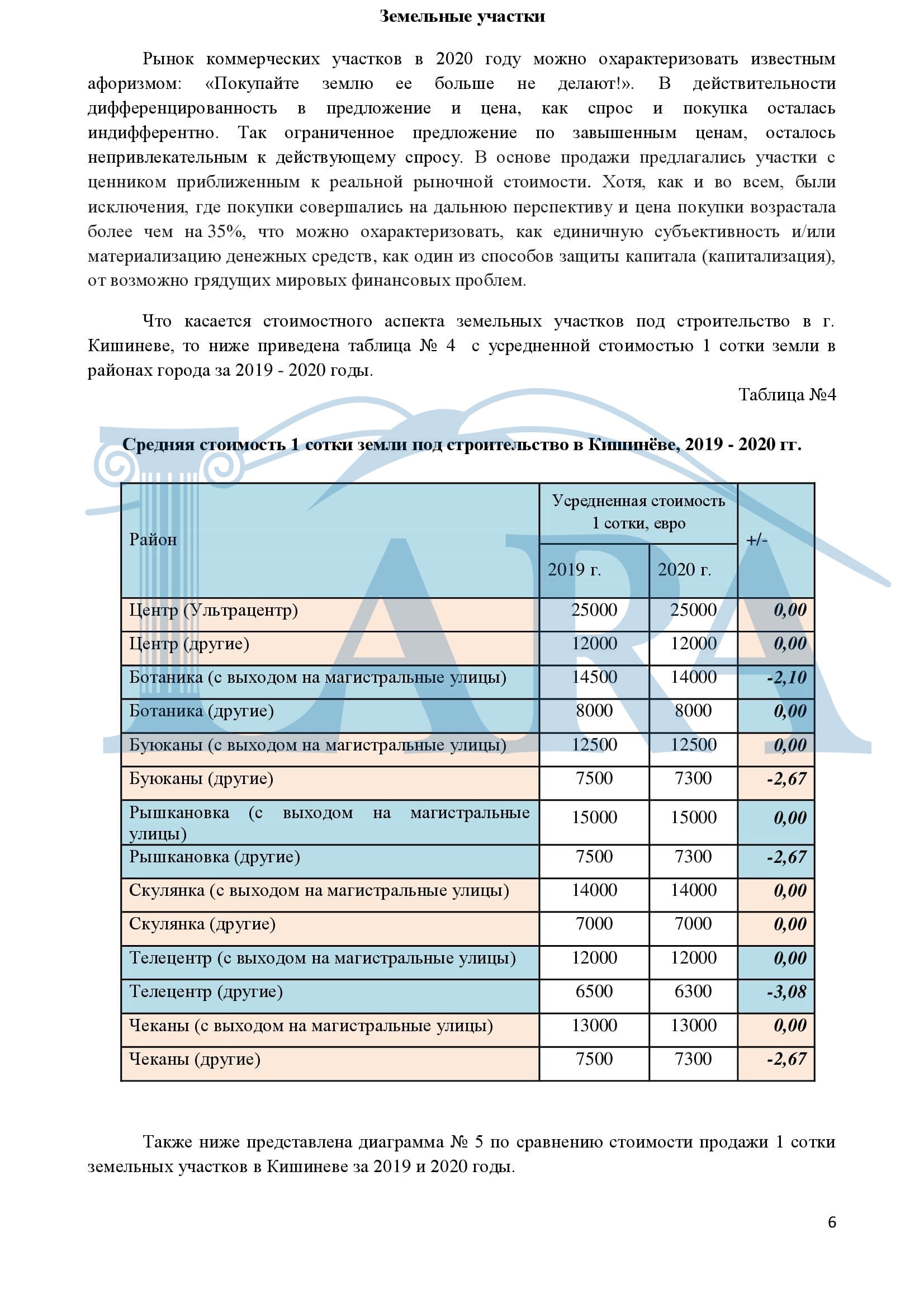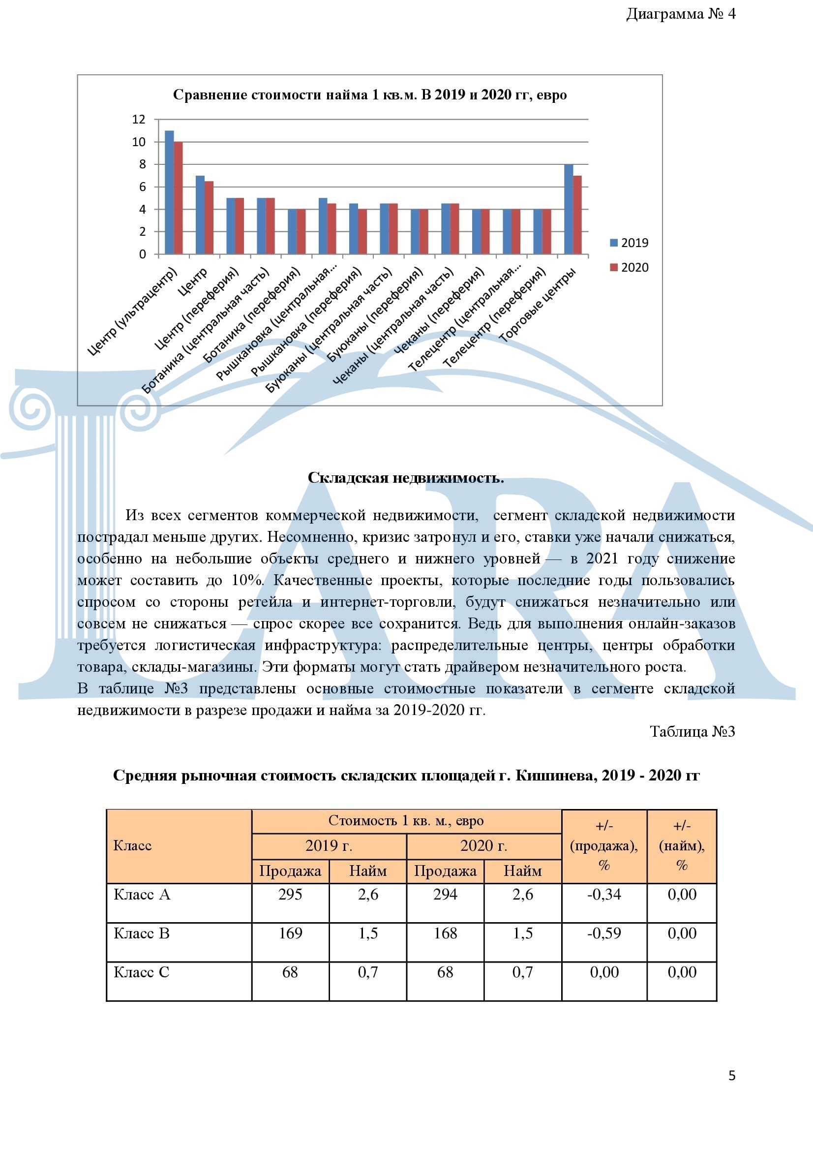 Анализ рынка коммерческой недвижимости мун.Кишинэу, за 2020 год.