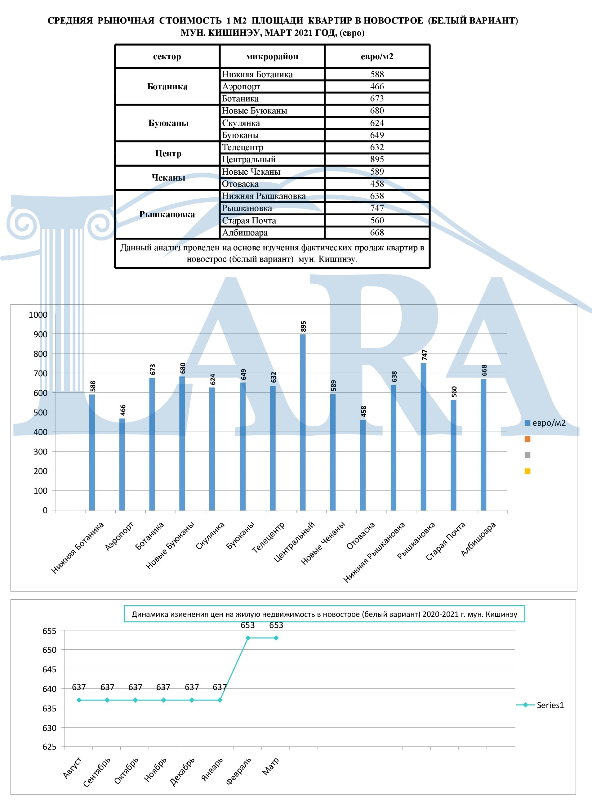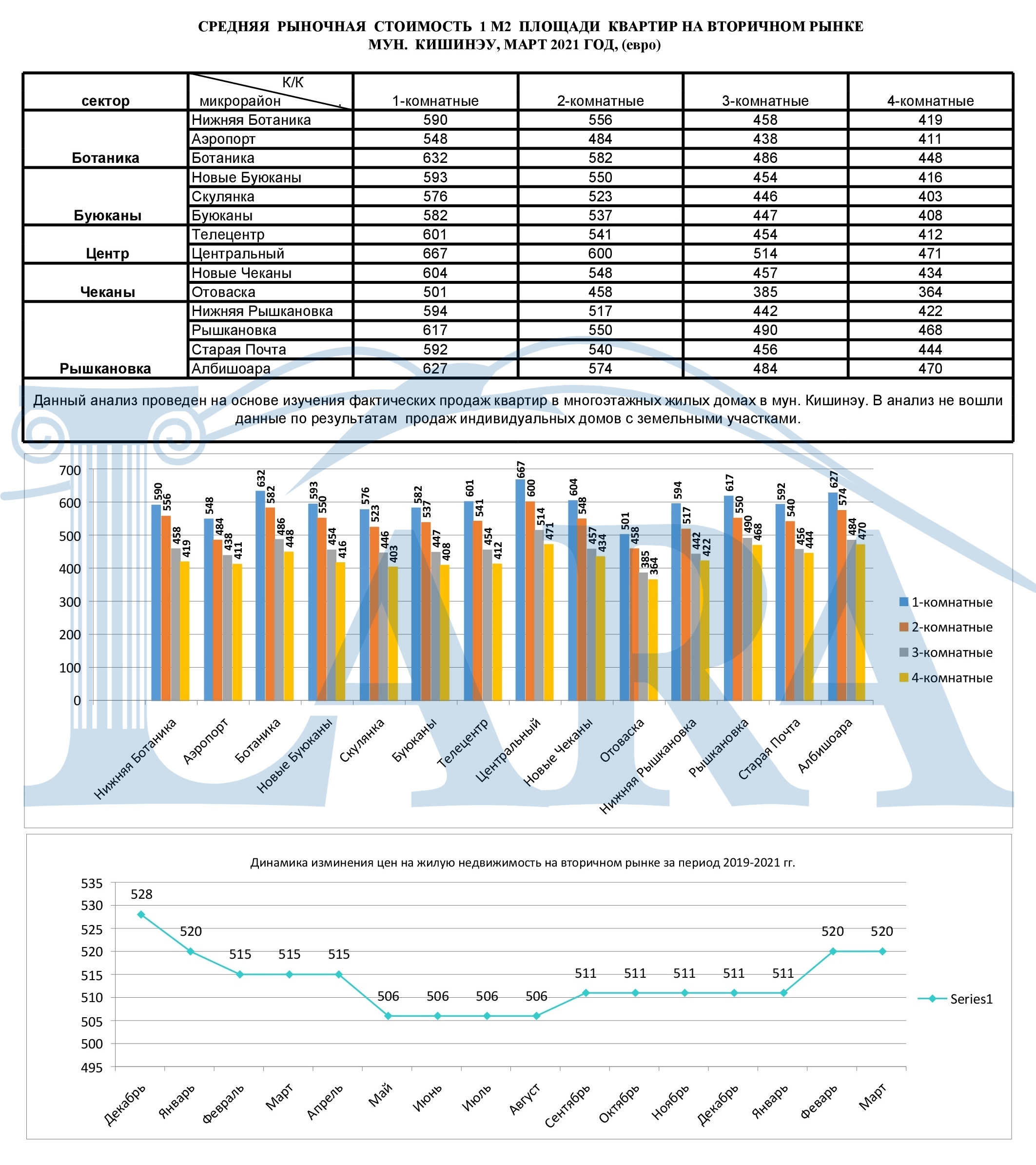 CРЕДНЯЯ РЫНОЧНАЯ СТОИМОСТЬ 1 М2 ПЛОЩАДИ КВАРТИР МУН. КИШИНЭУ, МАРТ 2021 ГОД, (евро)