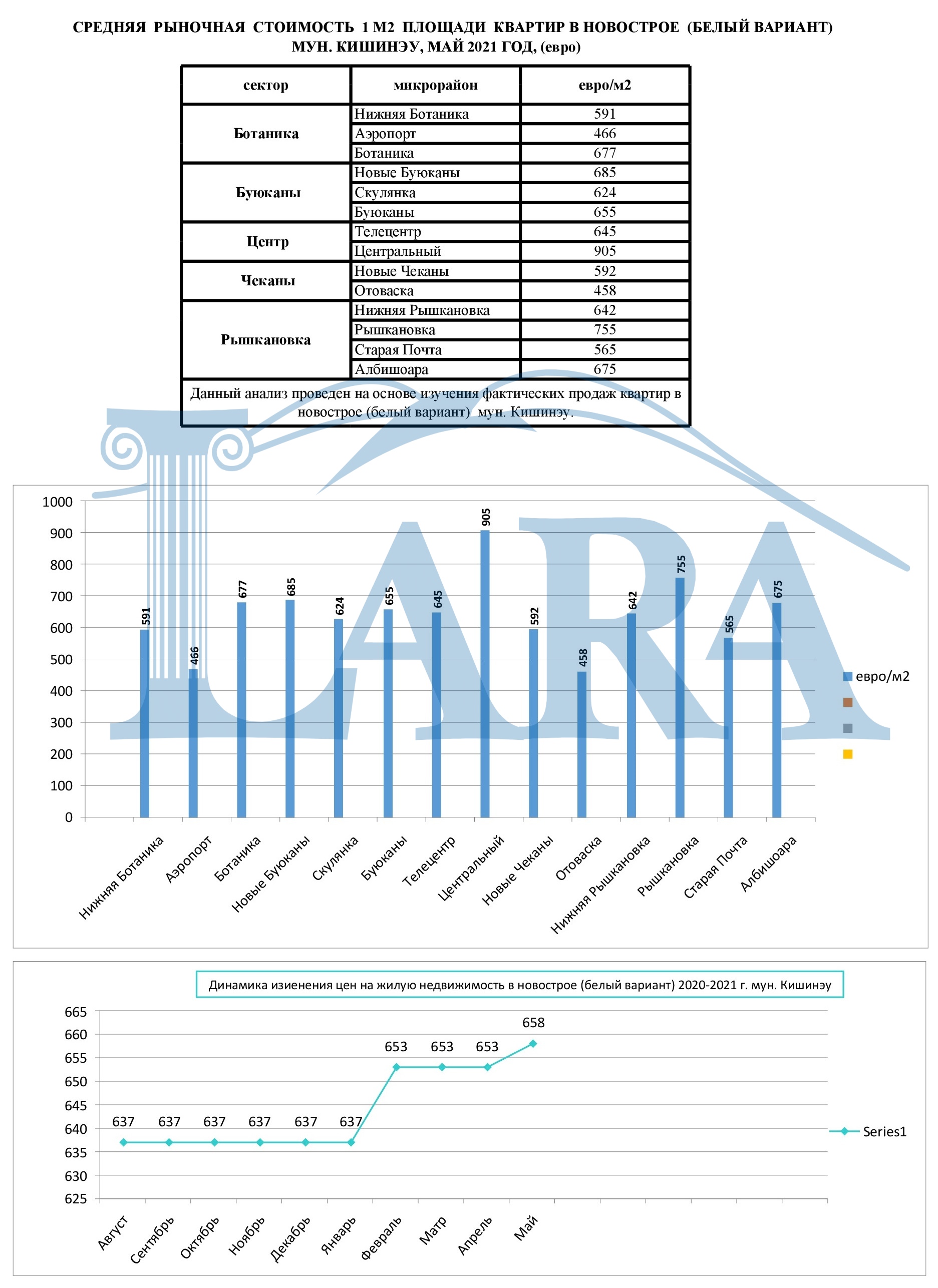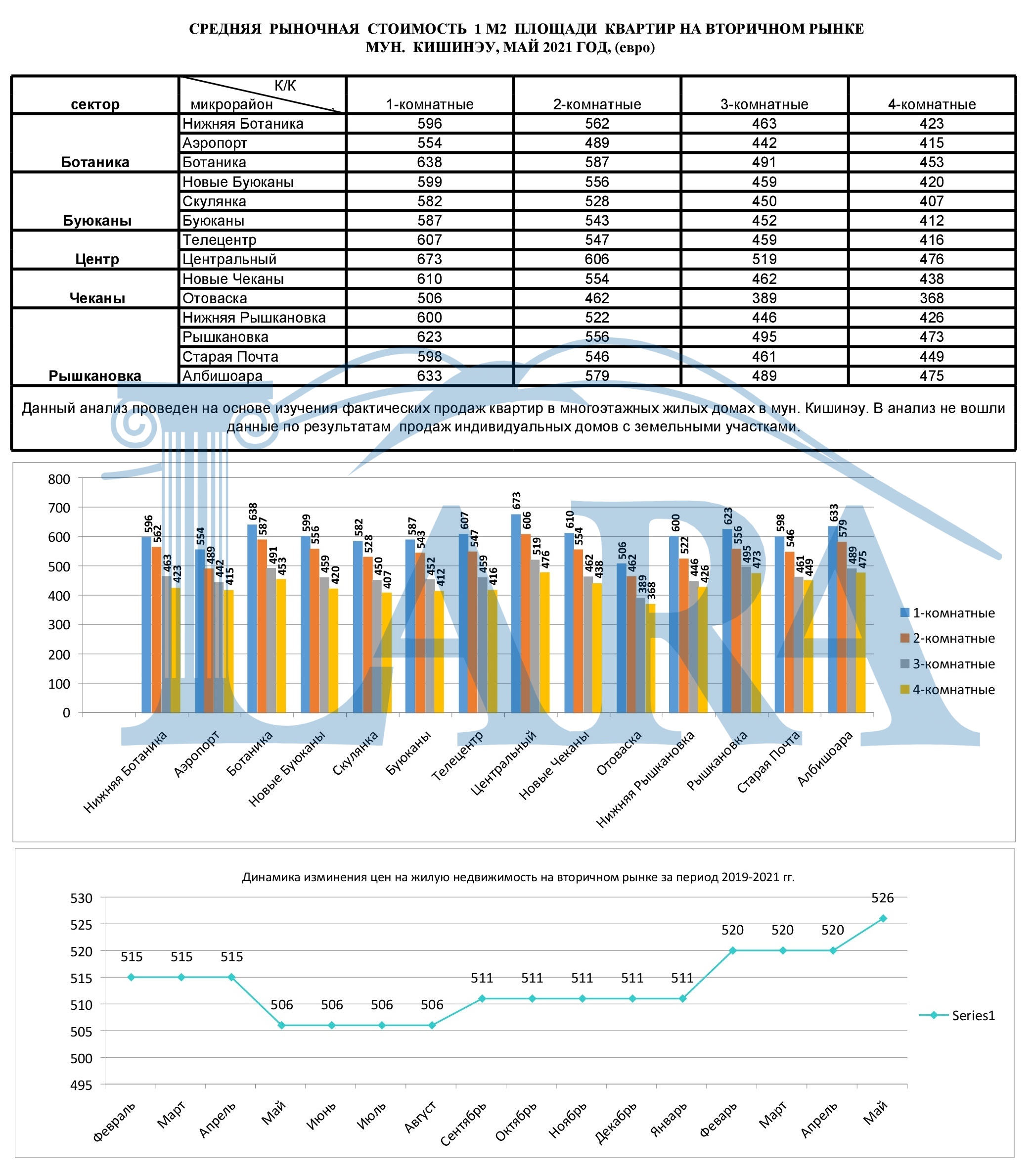 CРЕДНЯЯ РЫНОЧНАЯ СТОИМОСТЬ 1 М2 ПЛОЩАДИ КВАРТИР МУН. КИШИНЭУ, МАЙ 2021 ГОД, (евро)