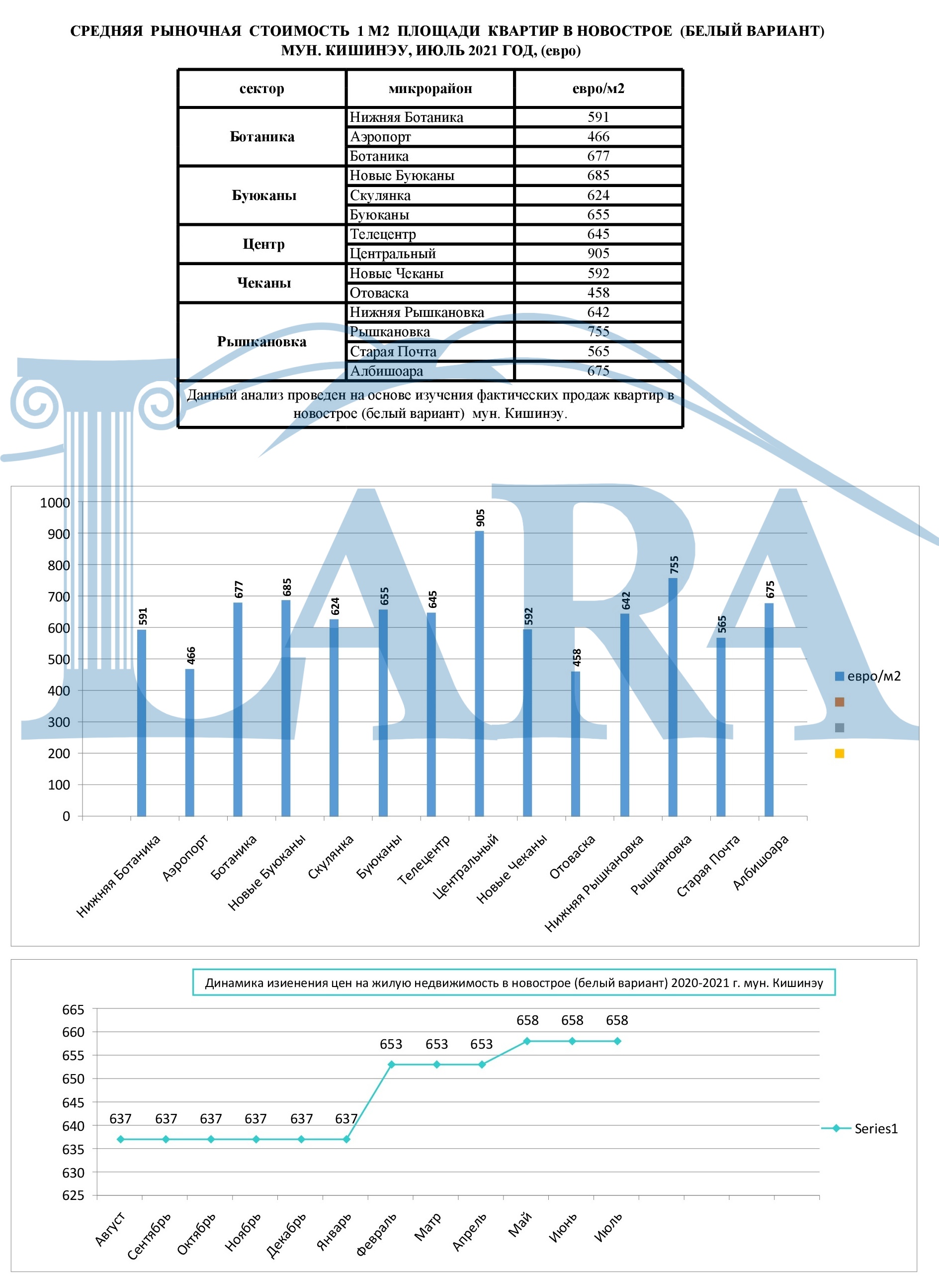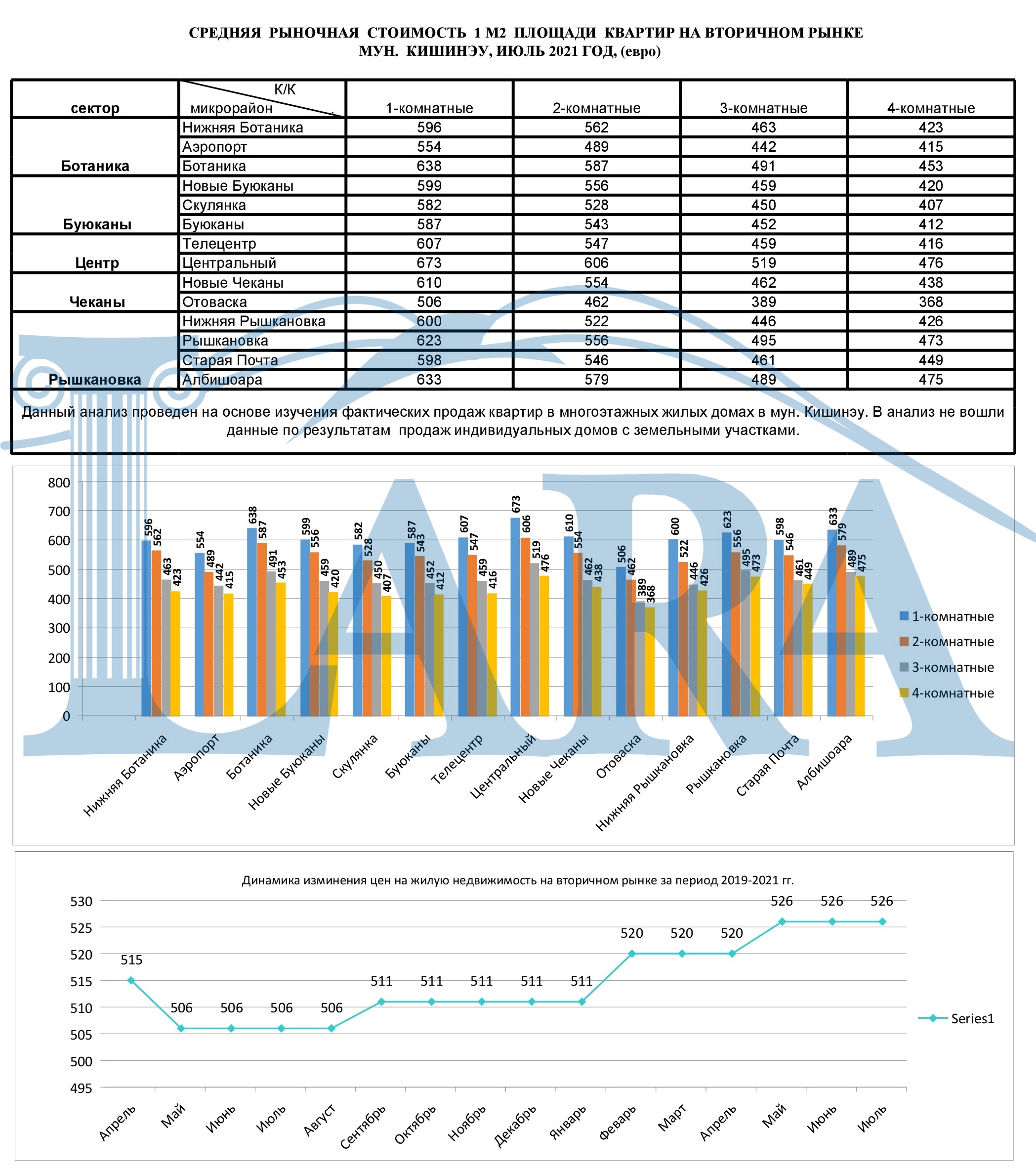 CРЕДНЯЯ РЫНОЧНАЯ СТОИМОСТЬ 1 М2 ПЛОЩАДИ КВАРТИР МУН. КИШИНЭУ, ИЮЛЬ 2021 ГОД, (евро)