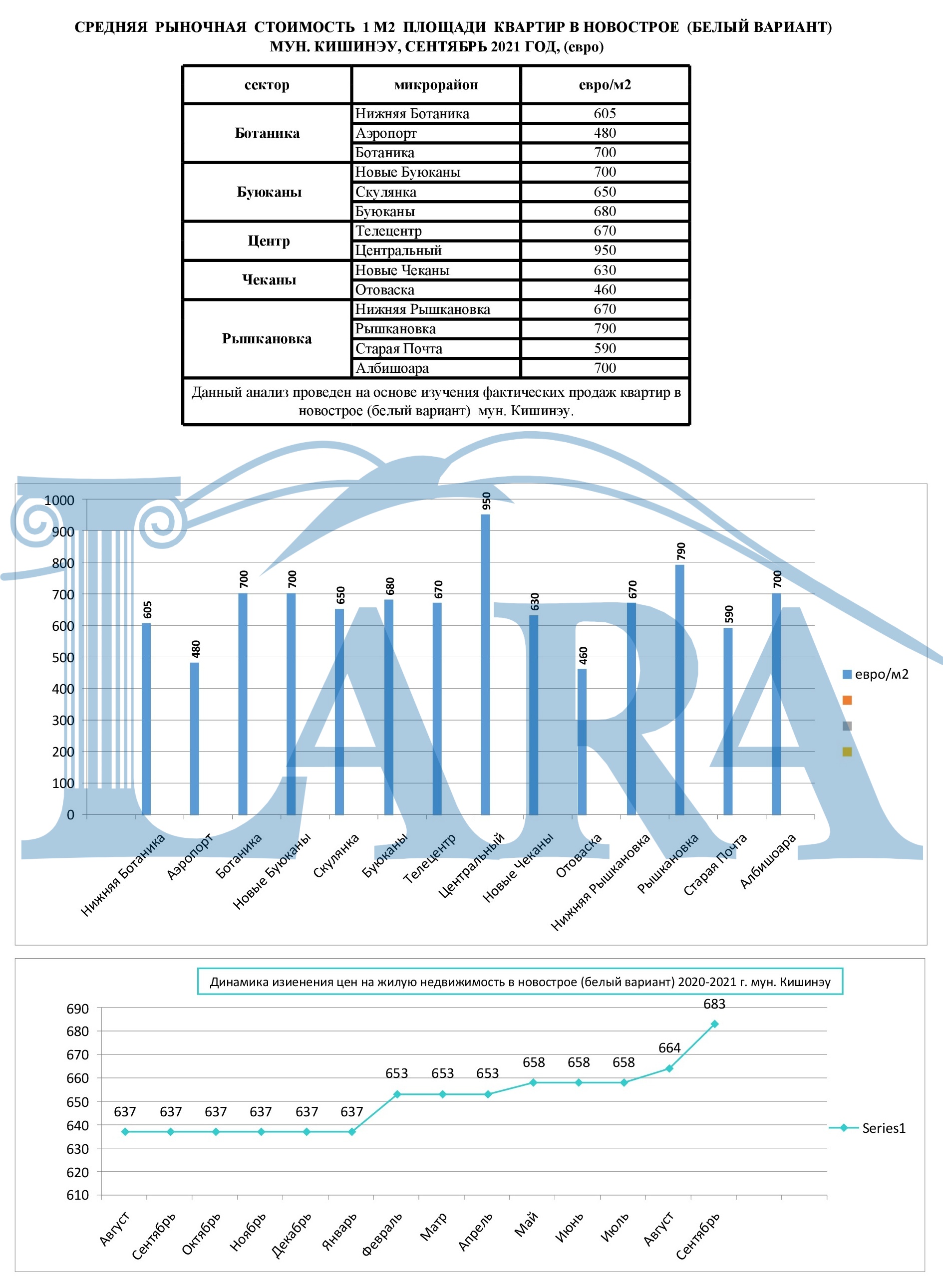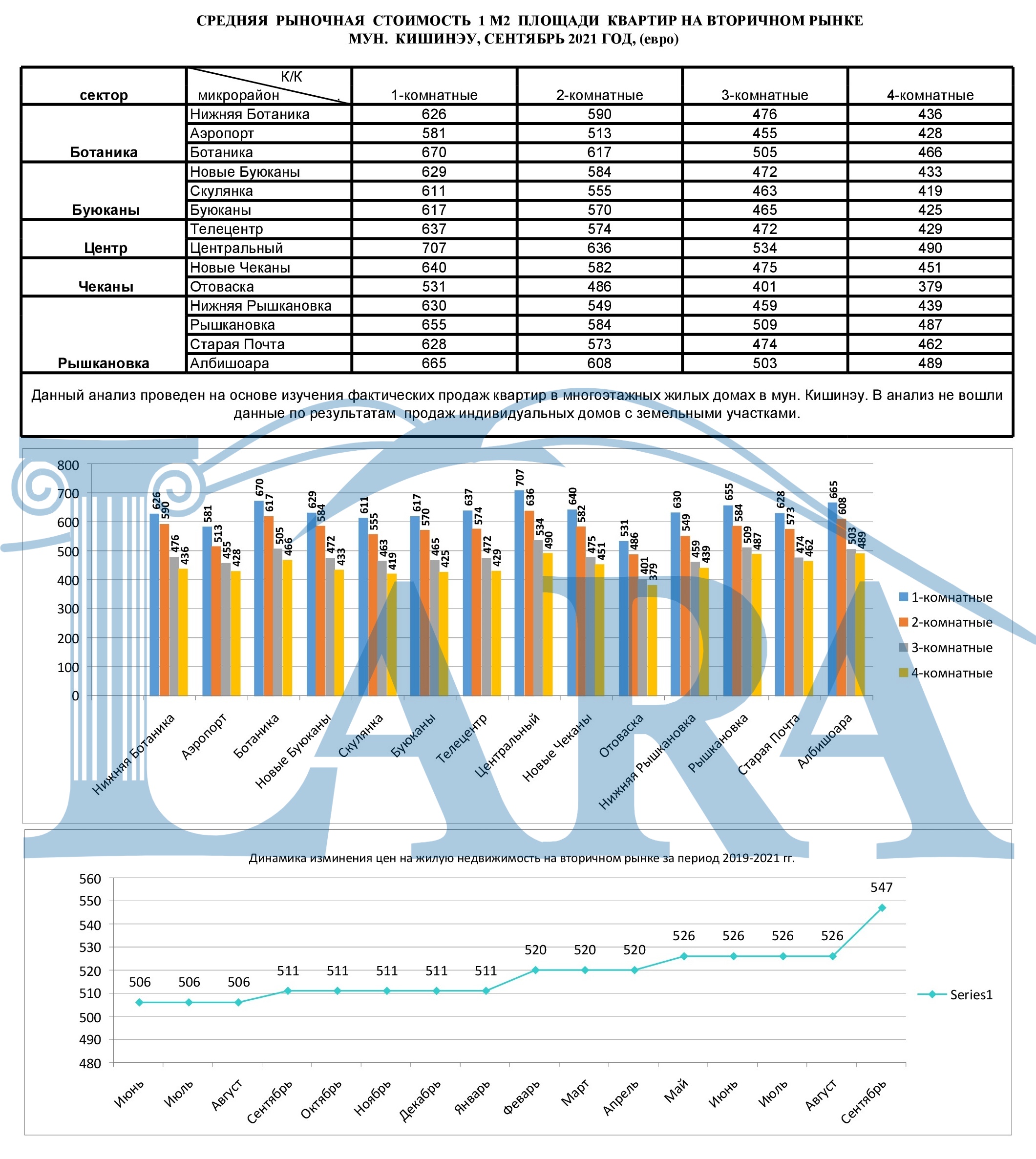 CРЕДНЯЯ РЫНОЧНАЯ СТОИМОСТЬ 1 М2 ПЛОЩАДИ КВАРТИР МУН. КИШИНЭУ, СЕНТЯБРЬ 2021 ГОД, (евро)