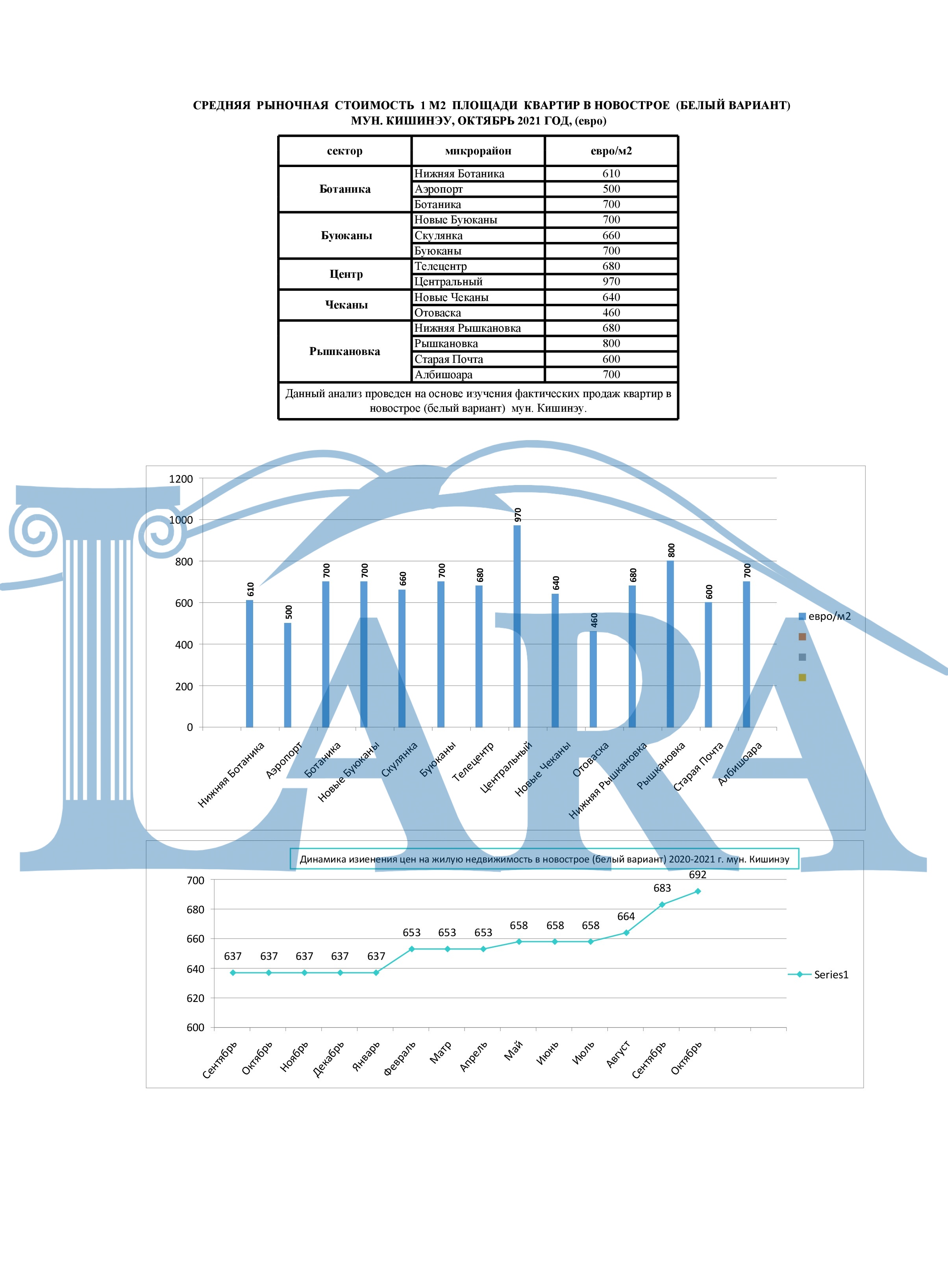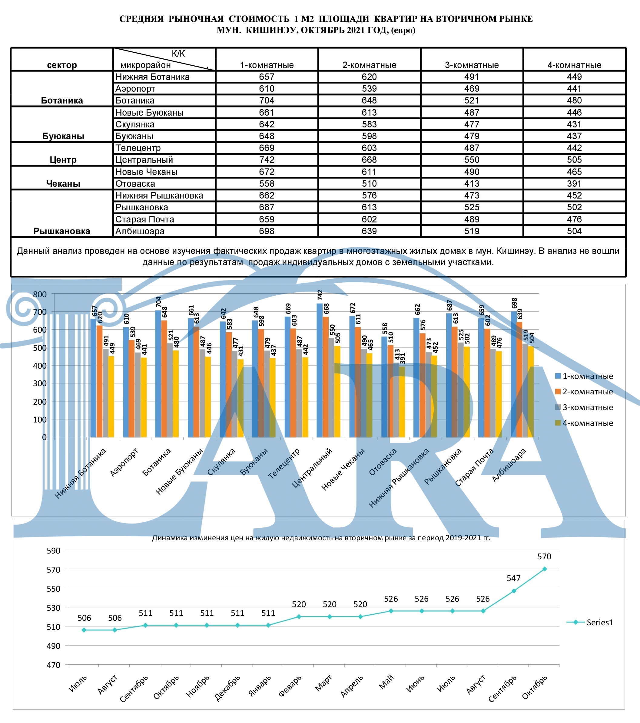 CРЕДНЯЯ РЫНОЧНАЯ СТОИМОСТЬ 1 М2 ПЛОЩАДИ КВАРТИР МУН. КИШИНЭУ, ОКТЯБРЬ 2021 ГОД, (евро)