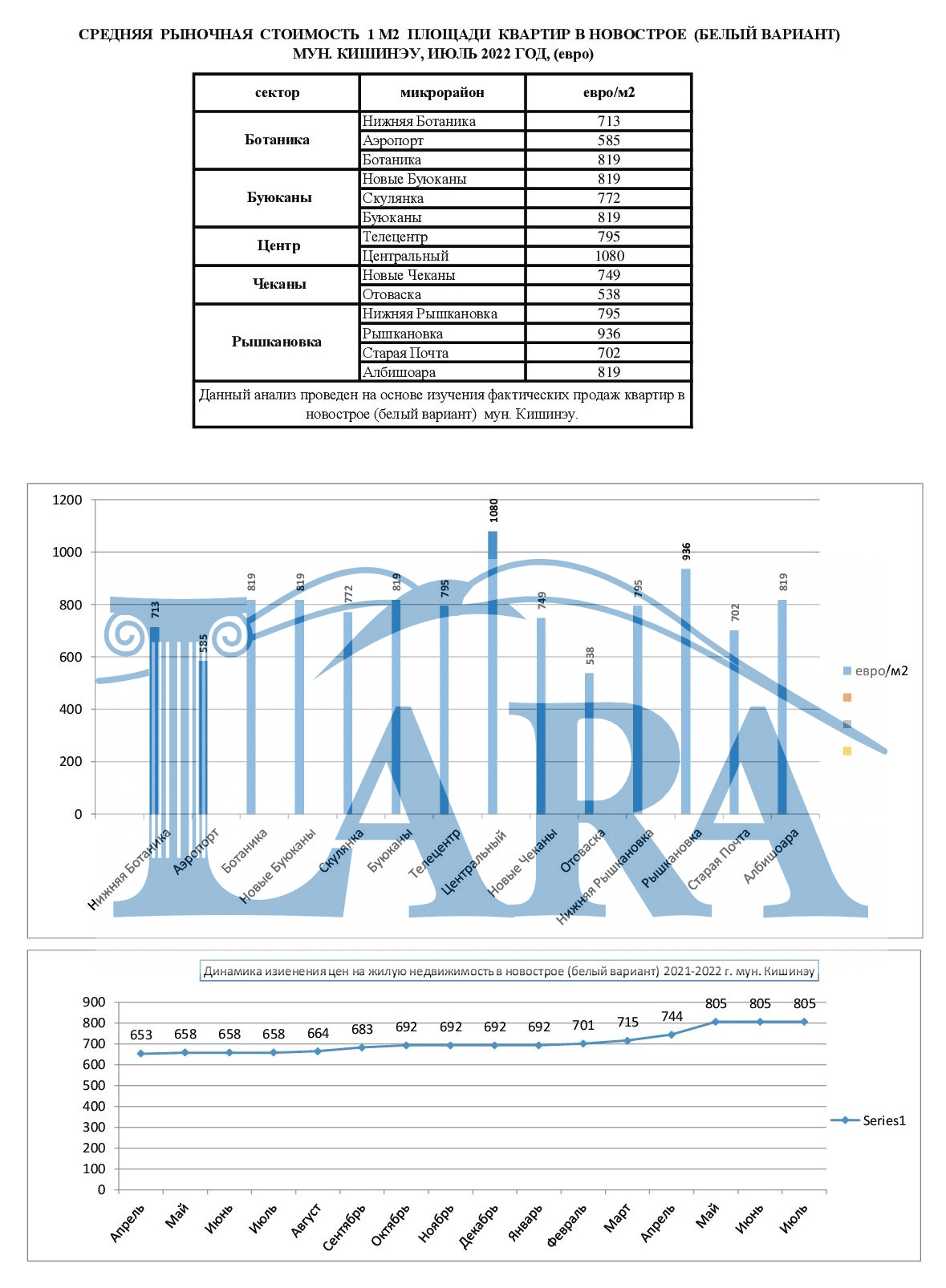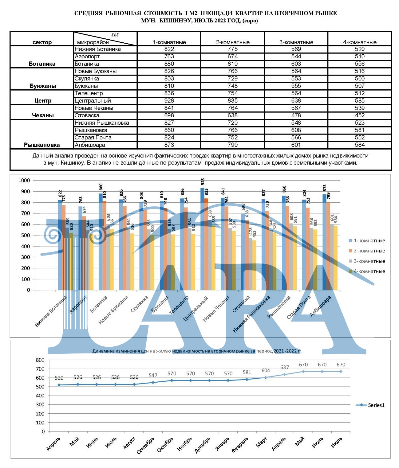 CРЕДНЯЯ РЫНОЧНАЯ СТОИМОСТЬ 1 М2 ПЛОЩАДИ КВАРТИР МУН. КИШИНЭУ, ИЮЛЬ 2022 ГОД, (евро)