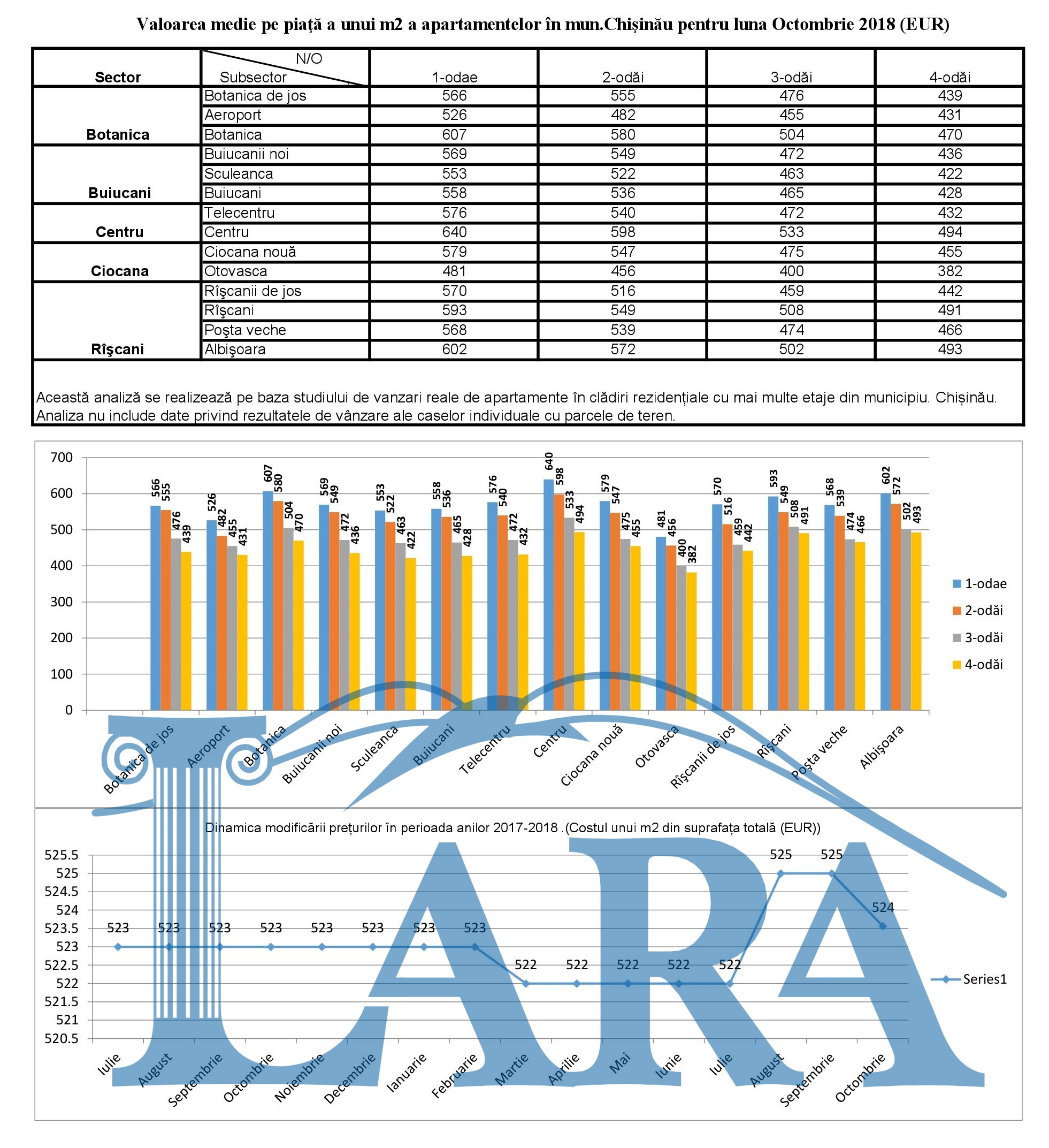 Valoarea medie pe piaţă a unui m2 a apartamentelor în mun.Chişinău pentru luna octombrie 2018 (EUR)