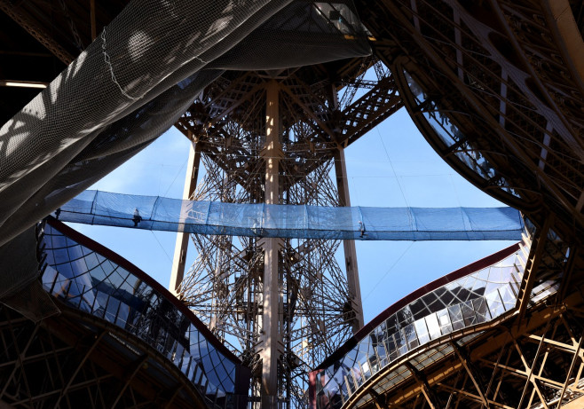 Atracția temporară, care a fost inaugurată marți, se întinde pe 40 de metri între pilonii de est și vest ai primului nivel și se află la o înălțime de circa 60 de metri deasupra solului