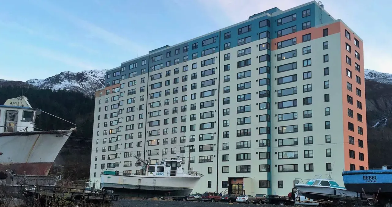 Уиттиер — населенный пункт с 270 жителями, и большая часть из них живет в жилом комплексе Begich Towers (BTI), построенном в 1957 году для американских военных. В нем расположено 150 квартир, маленький магазин и почтовый пункт. Оставшиеся 25% живут в другом жилом блоке у воды. Джейми с мужем купили там квартиру всего за 15 000 фунтов стерлингов.