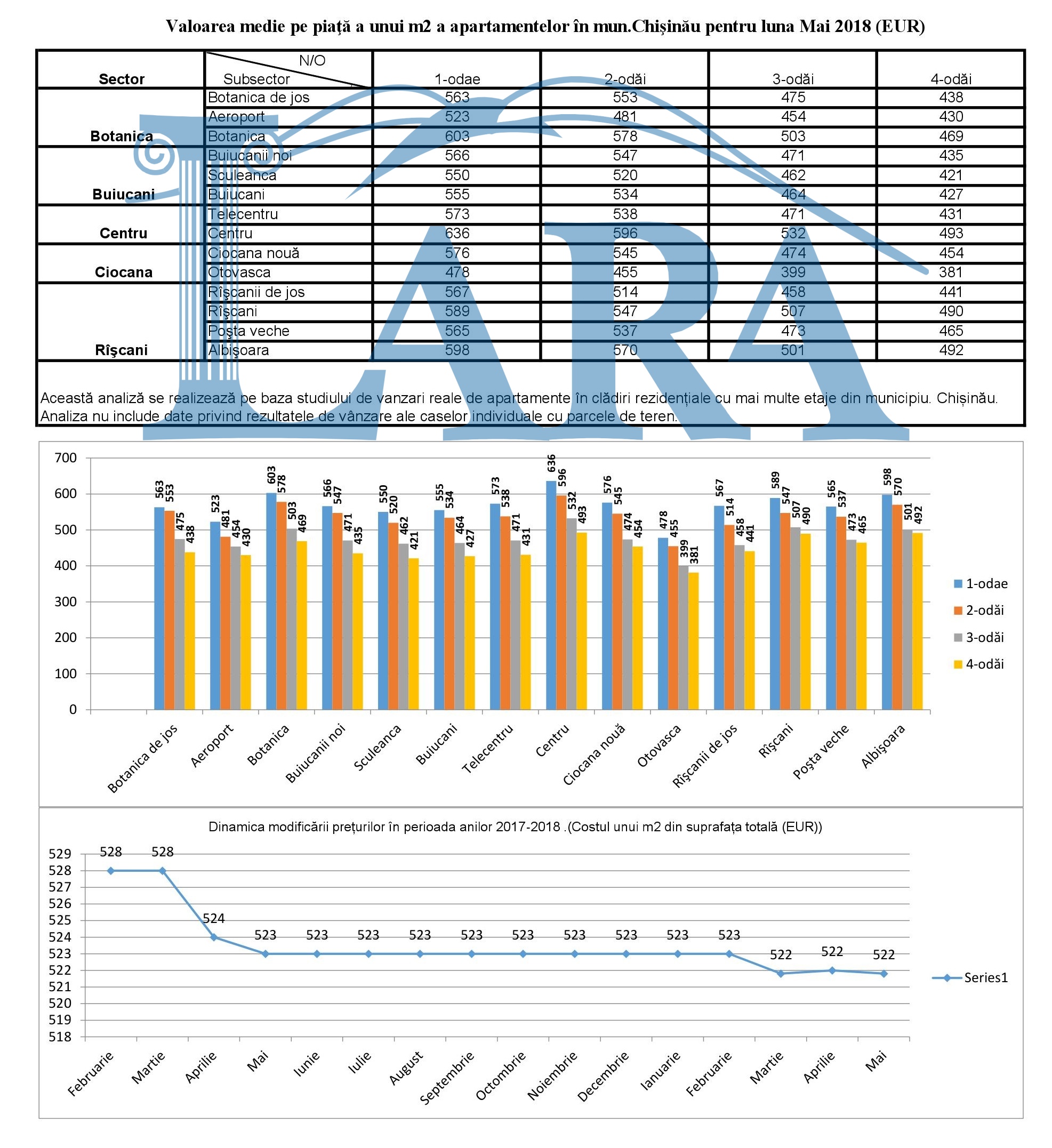 Valoarea medie pe piaţă a unui m2 a apartamentelor în mun.Chişinău pentru luna mai 2018 (EUR)