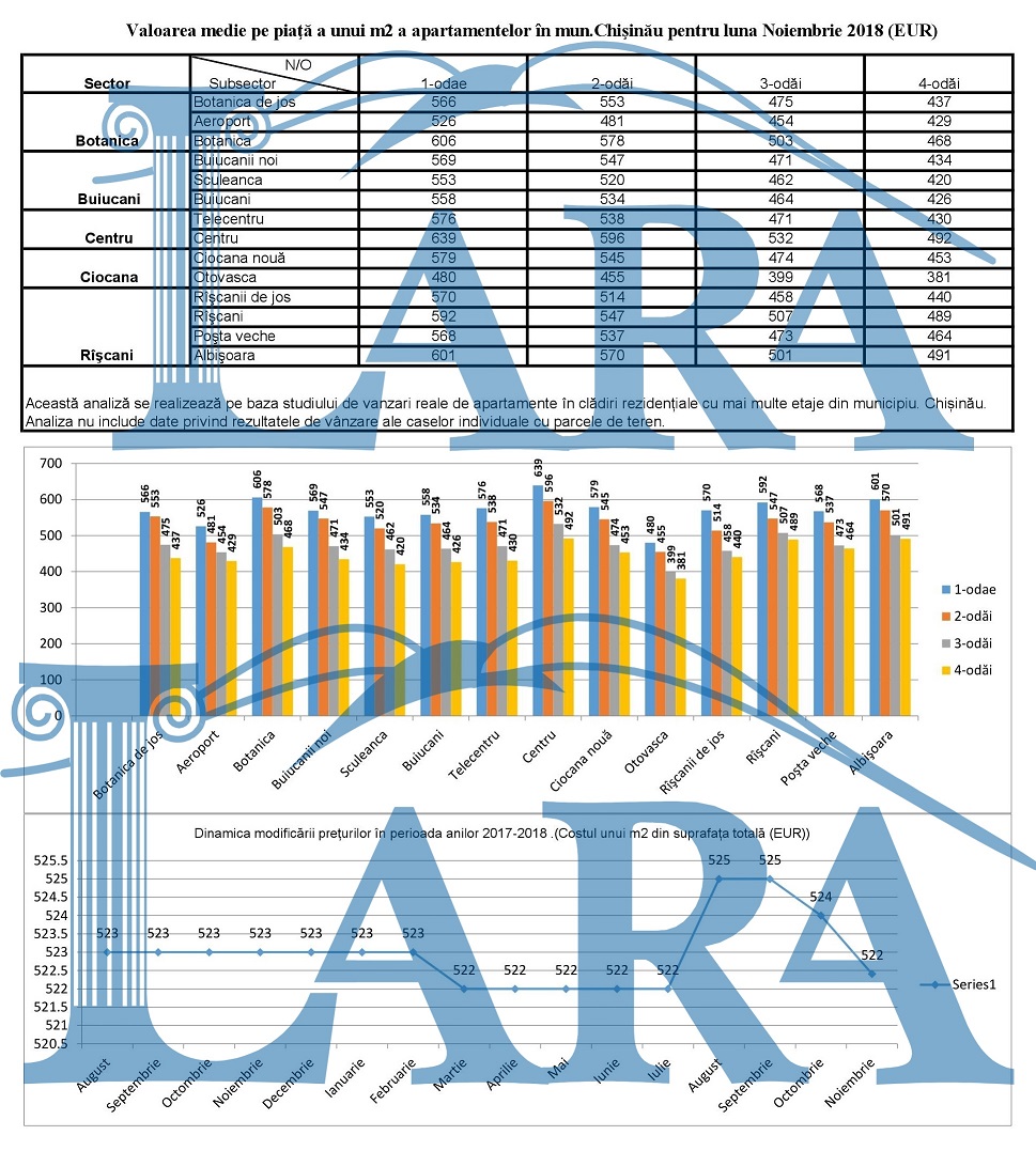 Valoarea medie pe piaţă a unui m2 a apartamentelor în mun.Chişinău pentru luna noiembrie 2018 (EUR)
