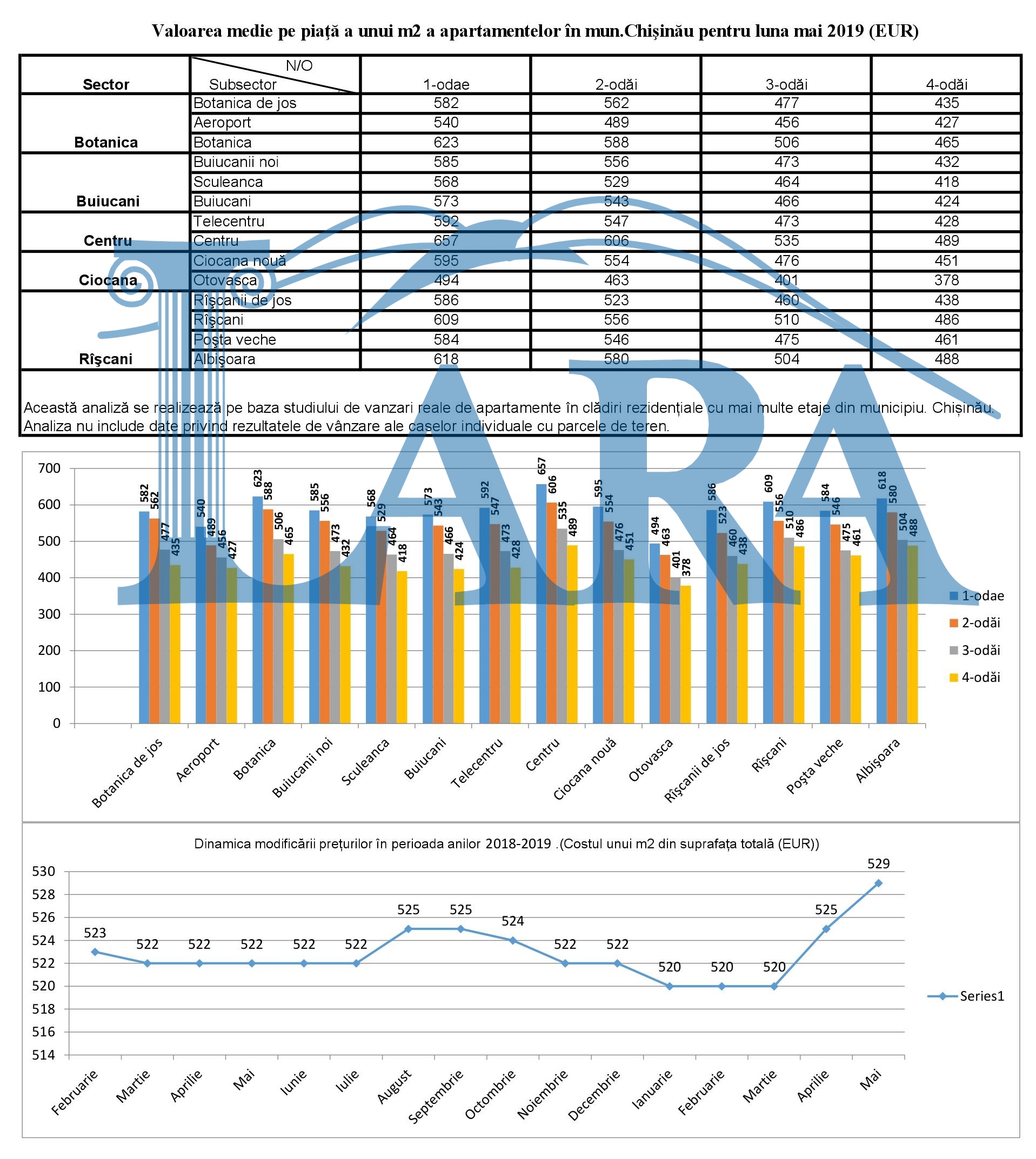 Valoarea medie pe piaţă a unui m2 a apartamentelor în mun.Chişinău pentru luna mai 2019 (EUR)