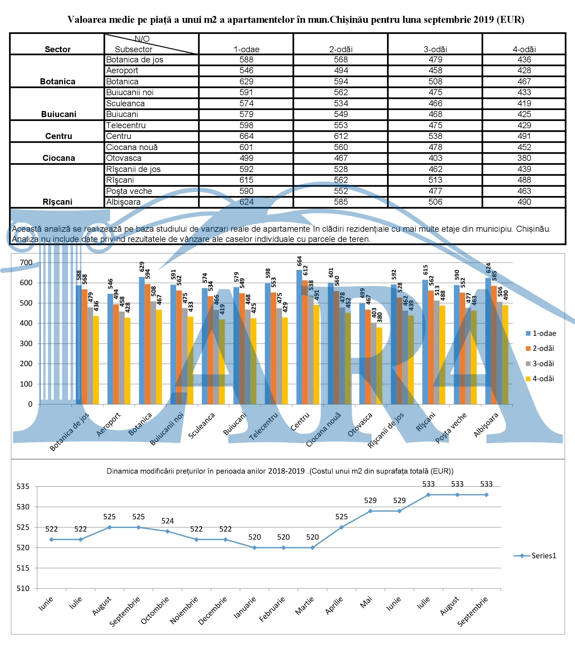 Valoarea medie pe piaţă a unui m2 a apartamentelor în mun.Chişinău pentru luna septembrie 2019 (EUR)