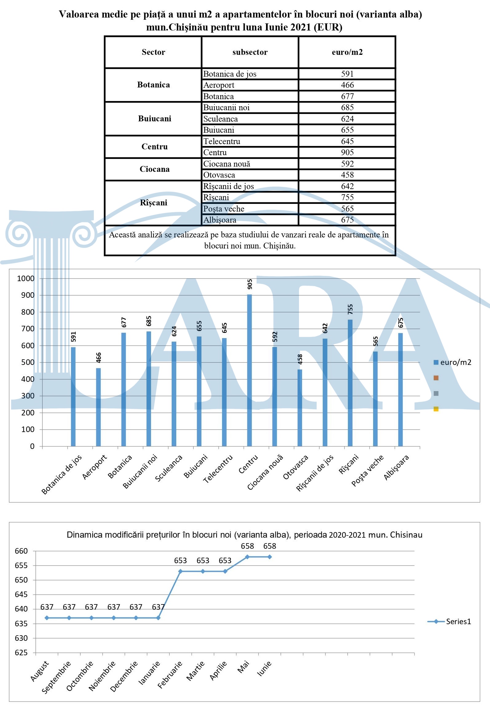 Valoarea medie pe piaţă a unui m2 a apartamentelor în mun.Chişinău pentru luna iunie 2021 (EUR)