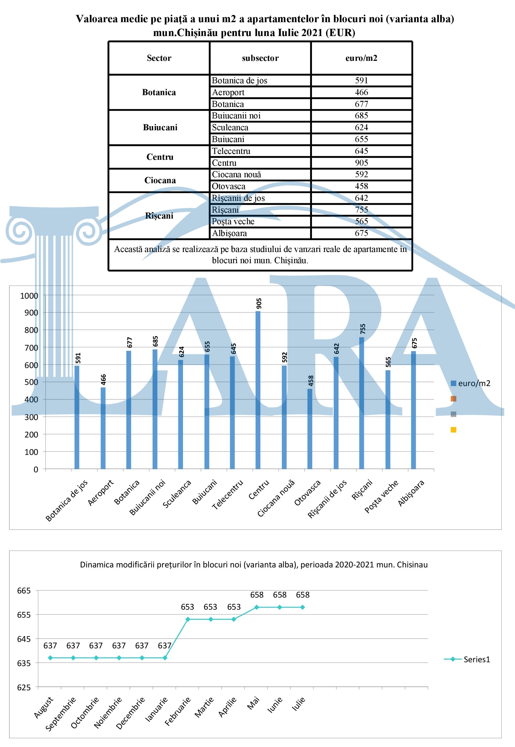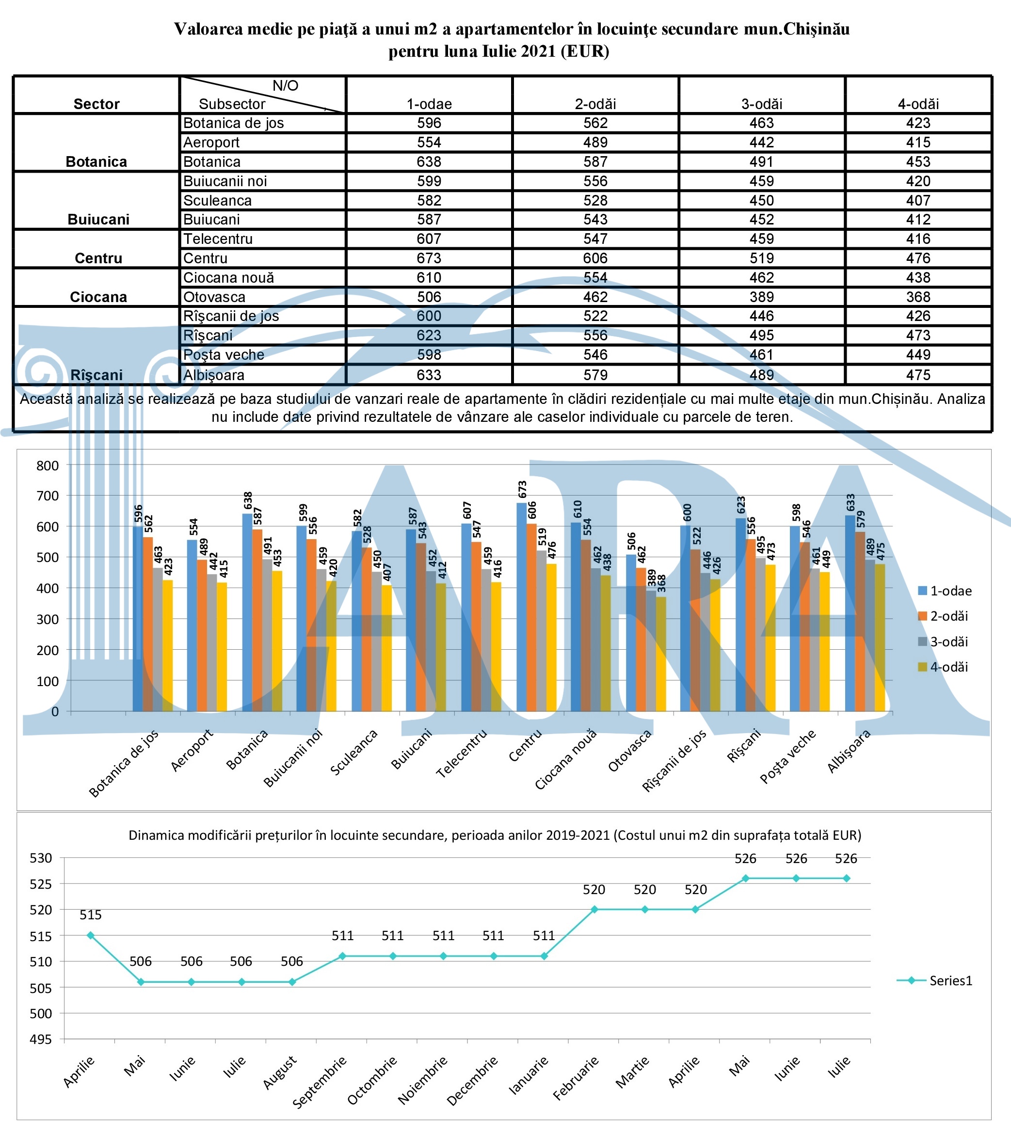 Valoarea medie pe piaţă a unui m2 a apartamentelor în mun.Chişinău pentru luna iulie 2021 (EUR)