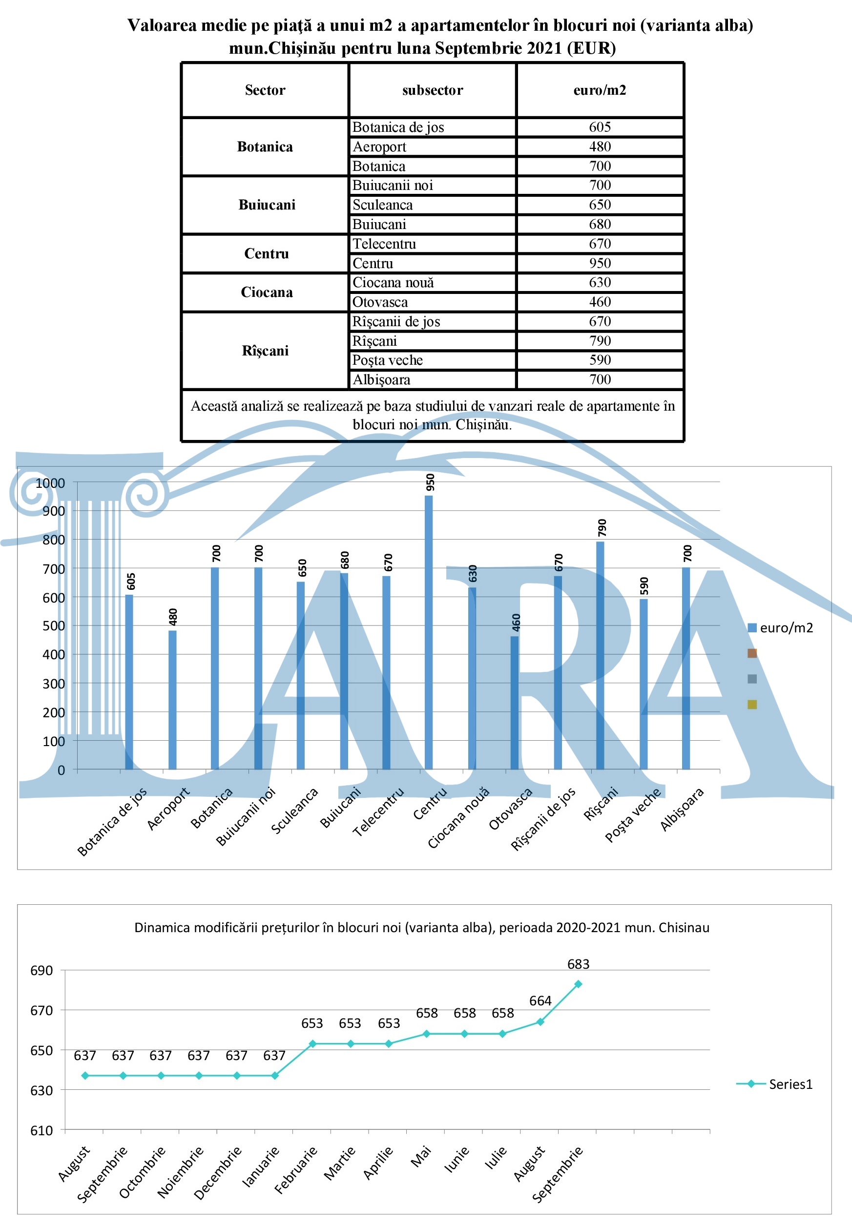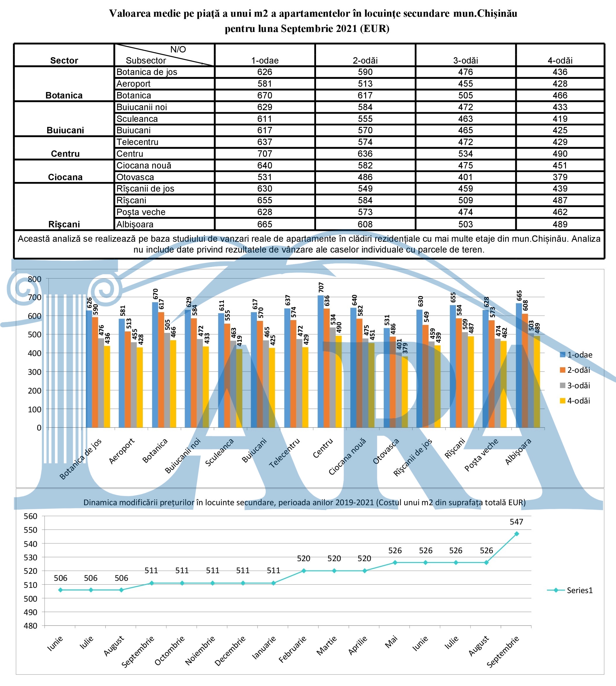 Valoarea medie pe piaţă a unui m2 a apartamentelor în mun.Chişinău pentru luna septembrie 2021 (EUR)