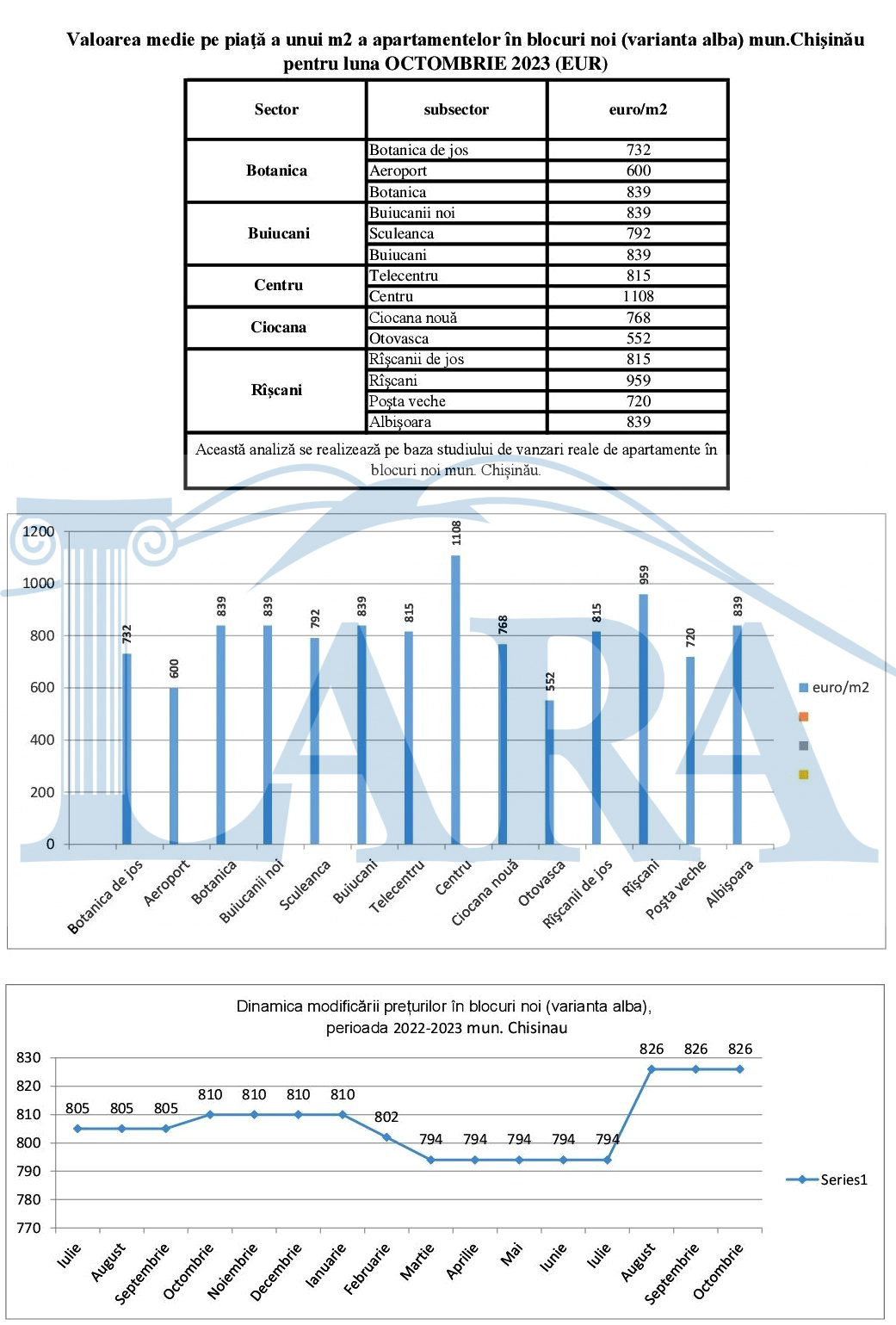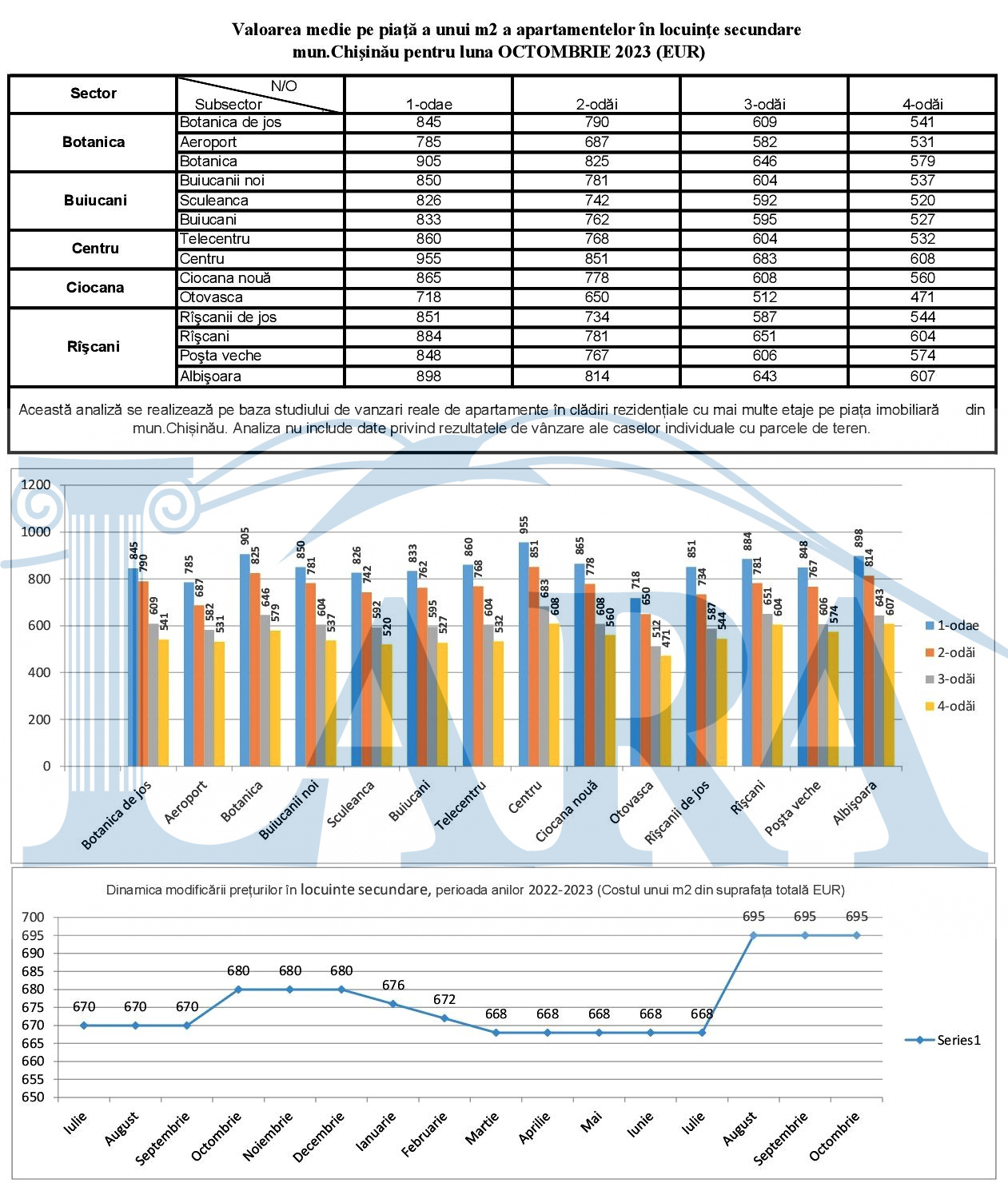 Valoarea medie pe piaţă a unui m2 a apartamentelor în mun.Chişinău pentru luna octombrie 2023 (EUR)