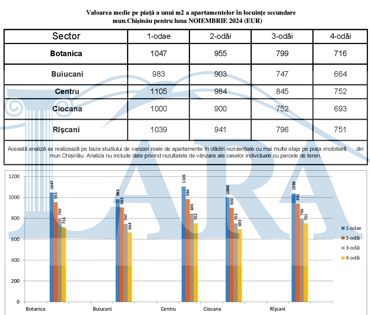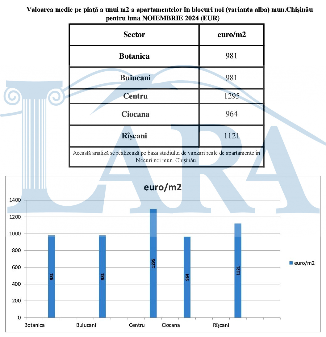 Valoarea medie pe piaţă a unui m2 a apartamentelor în mun.Chişinău pentru luna NOIEMBRIE 2024 (EUR)