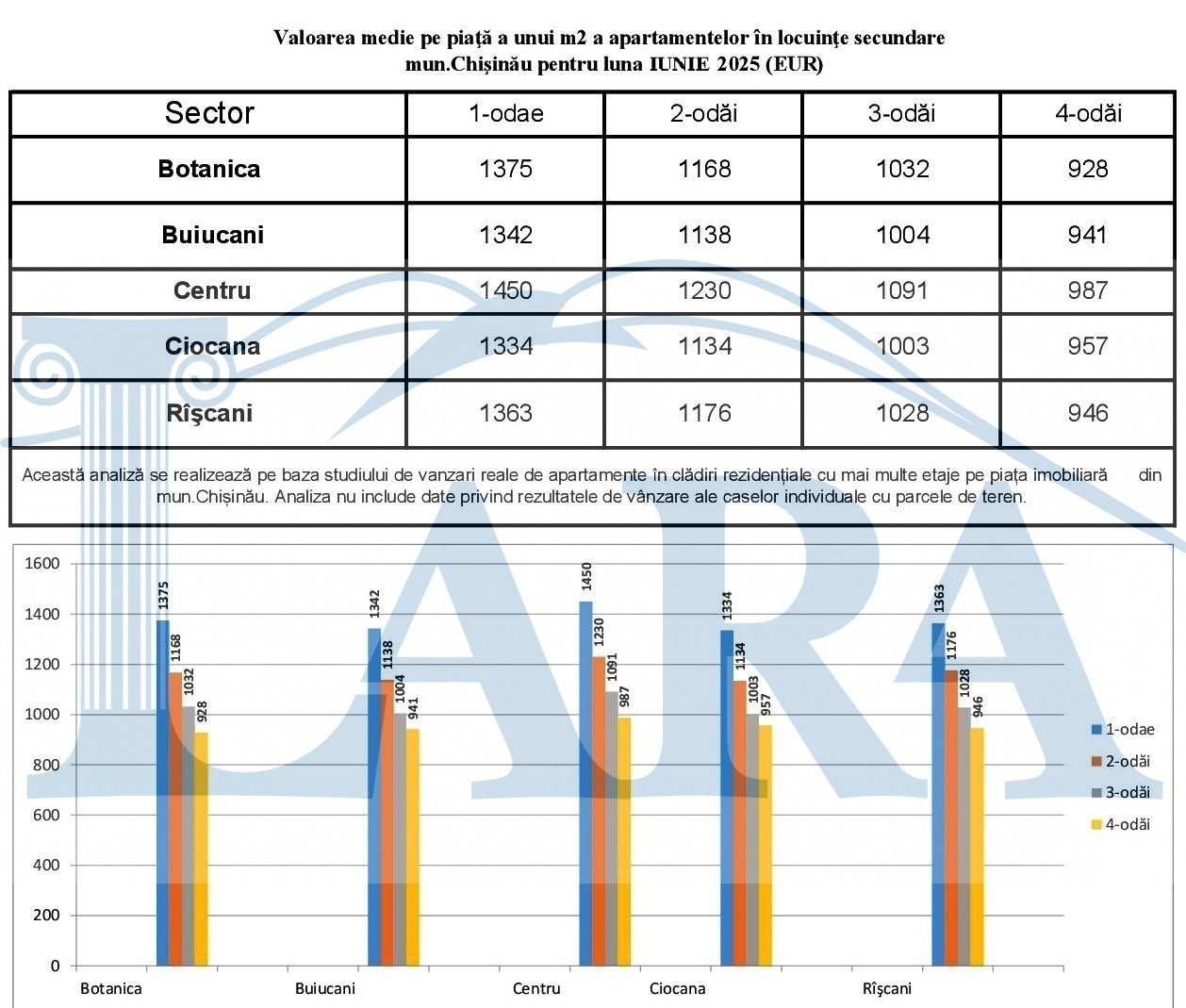 Valoarea medie pe piaţă a unui m2 a apartamentelor în mun.Chişinău pentru luna iunie 2025 (EUR)