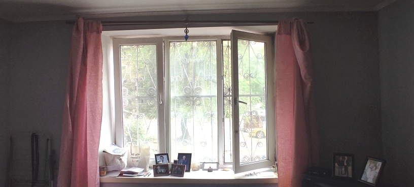Окно выходит во двор, тихо.