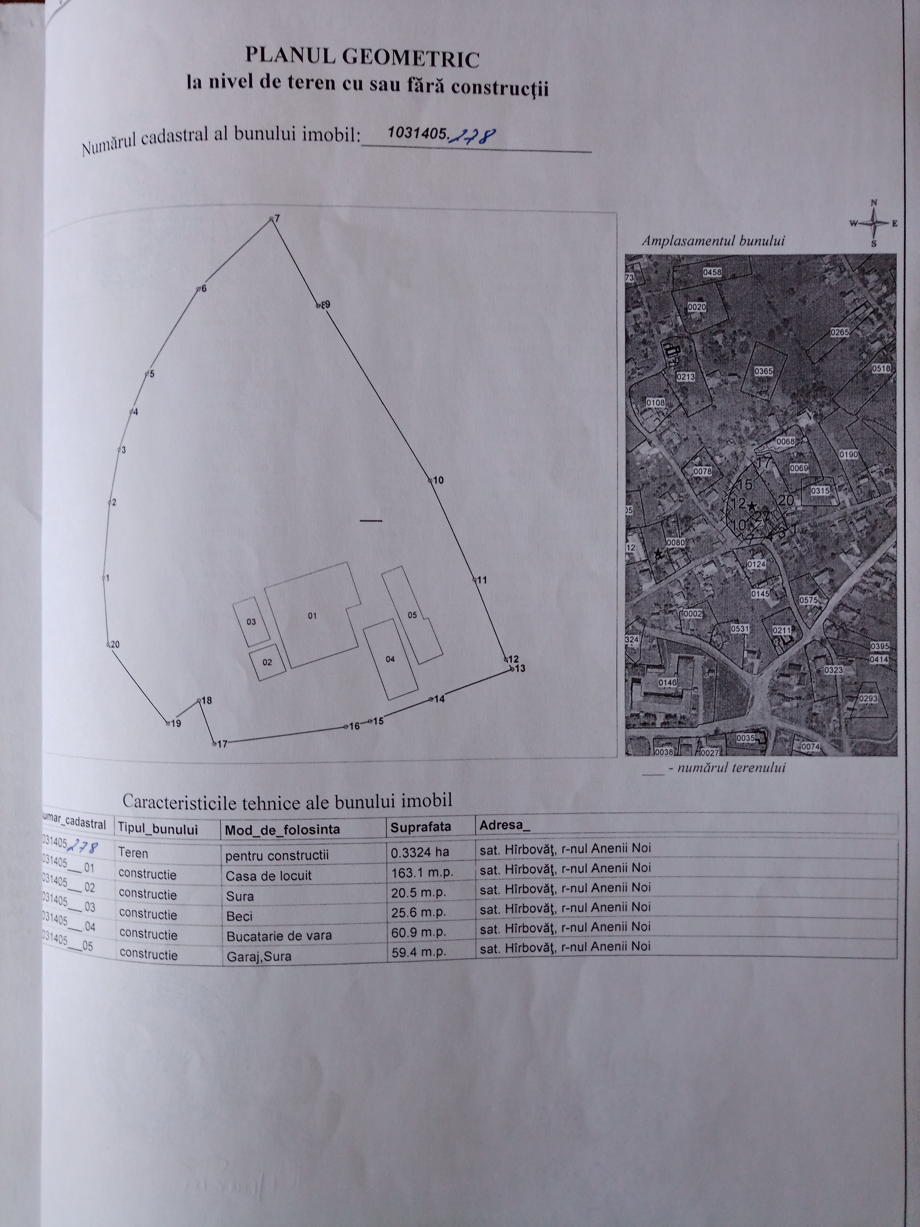 Se vinde Casa 163 m2, garaj,beci,sura .Teren 33 ari. GAZ,Apeduct Mobilata.Centru Satul Hirbovat,R-nul Anenii-Noi