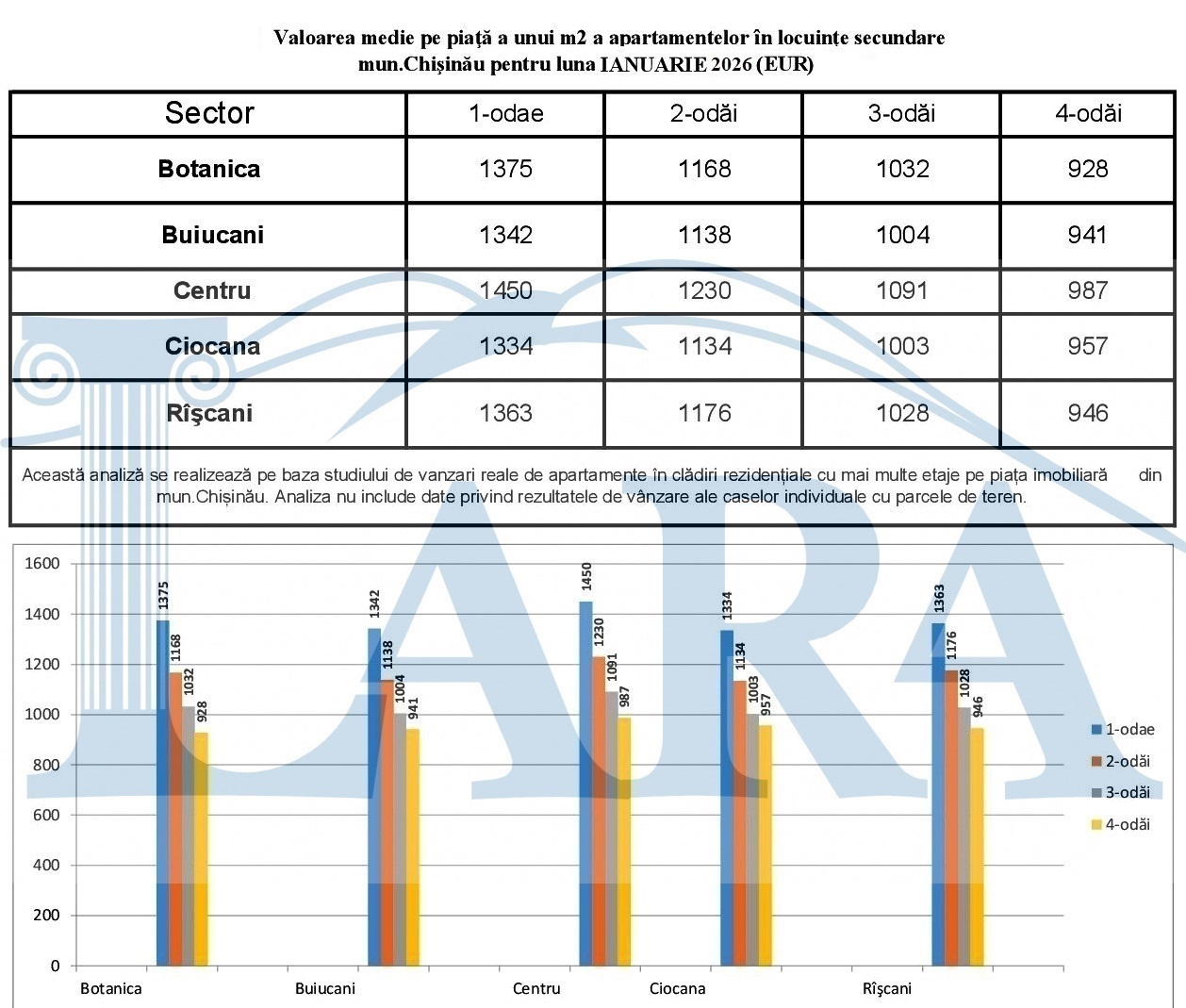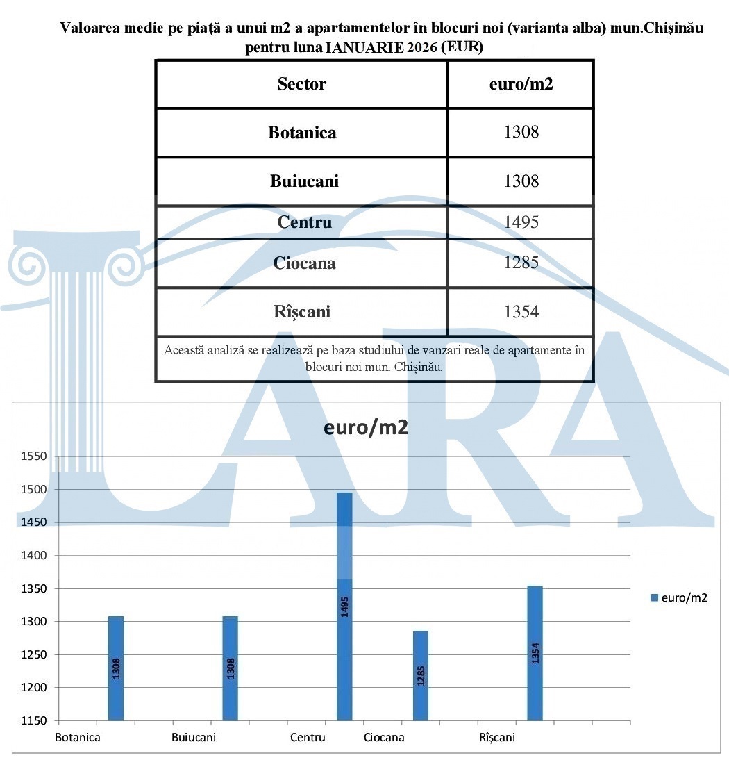 Valoarea medie pe piaţă a unui m2 a apartamentelor în mun.Chişinău pentru luna IANUARIE 2026 (EUR)